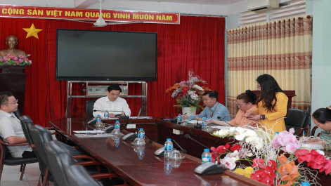 Phòng NCKH, SĐH&QHQT báo cáo quá trình diễn biến thực hiện và những vướng mắc đề tài của ông Nguyễn Thành Hưng tại buổi làm việc